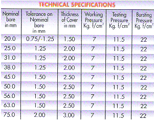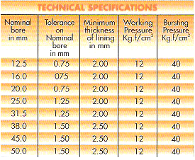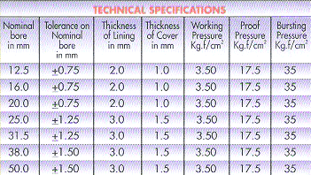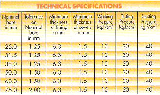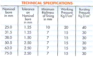 Uniform lining of suitable rubber compound resistant to oil and petroleum products.Tube is seamless upto 88 mm NB. |