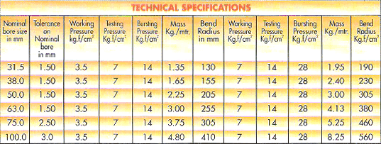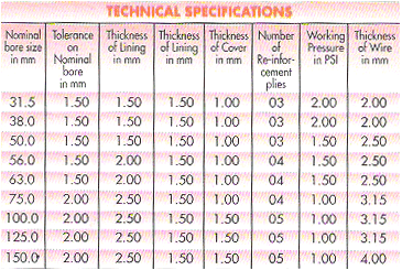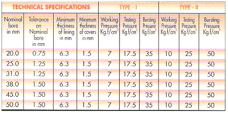 | Type of Hoses | : | 1. Hose with rough bore. 2. Hose with smooth bore. |